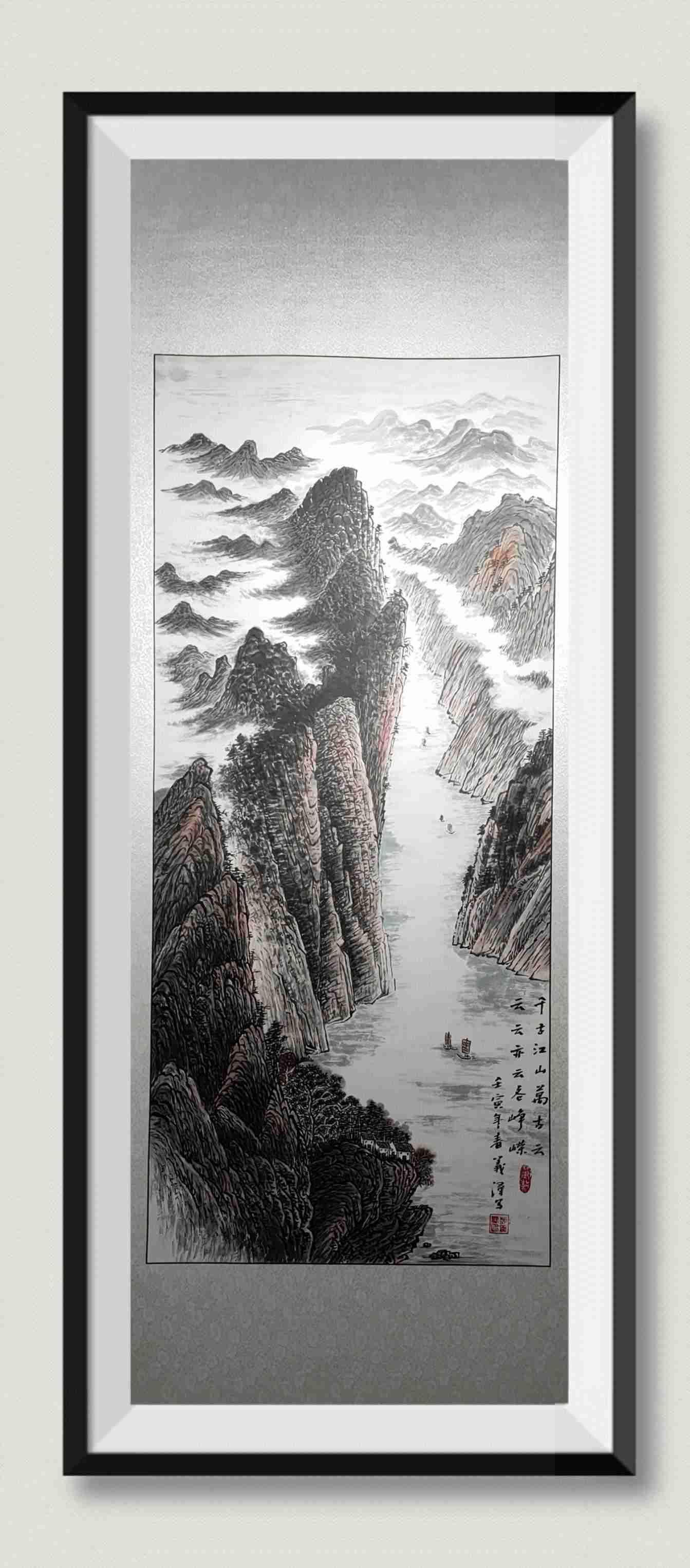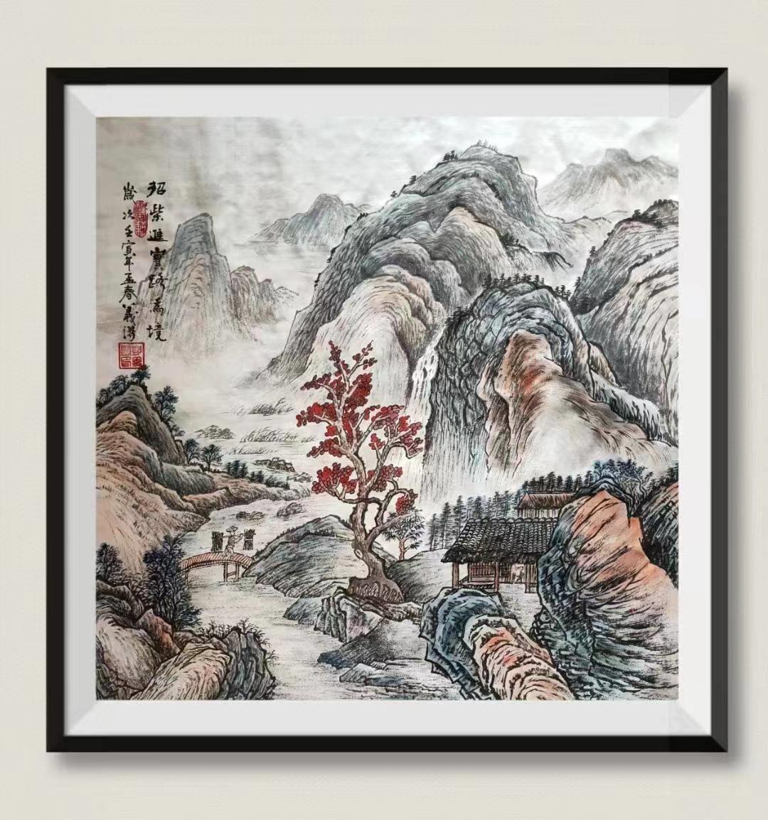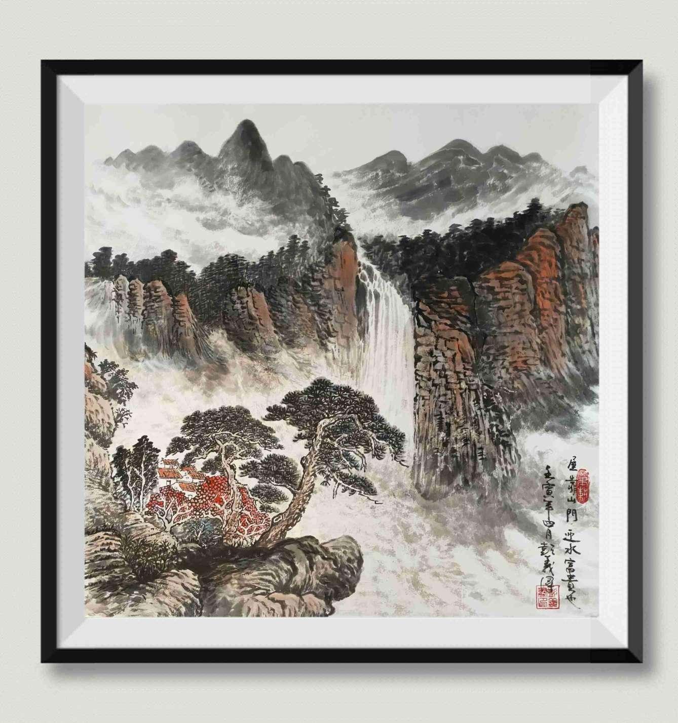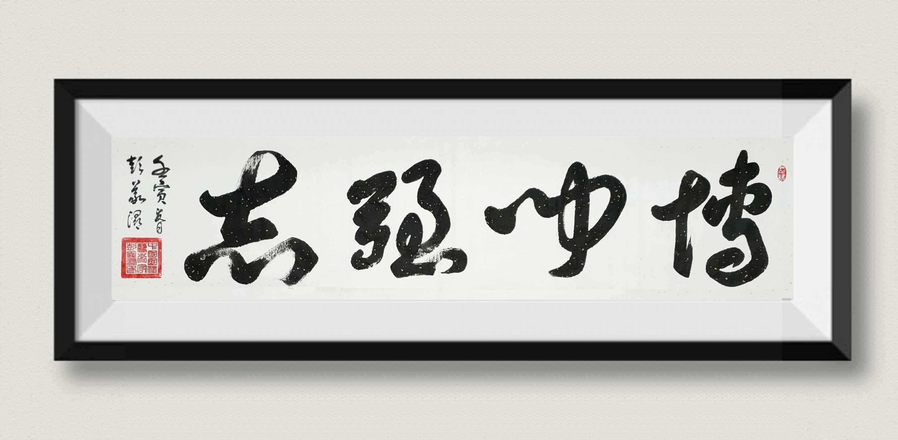 笔墨雄才师法帖,山水境界最文人。最能体现他书法性灵文人质感的书体,还当属行书与草书两体。他的行书法宗二王,以清雅品逸为潇酒,草书则集成了怀素的恣意挥纵与毛体草书的气度雄迈,写成龙飞凤舞的性灵动感,是进阶顶层的显要例证!同时,他的山水画以积墨为宗,以小青绿为法,是明清两代文人山水画的正宗传承,水墨青绿习成董其昌的雅风,积墨技法则专注于龚贤的黑白,一幅山水积墨十层表现形韵,先前是龚贤的自豪,今朝却又是彭义浔先生的绝招!师宗大家,亦成大家,文脉传承,功成主流!