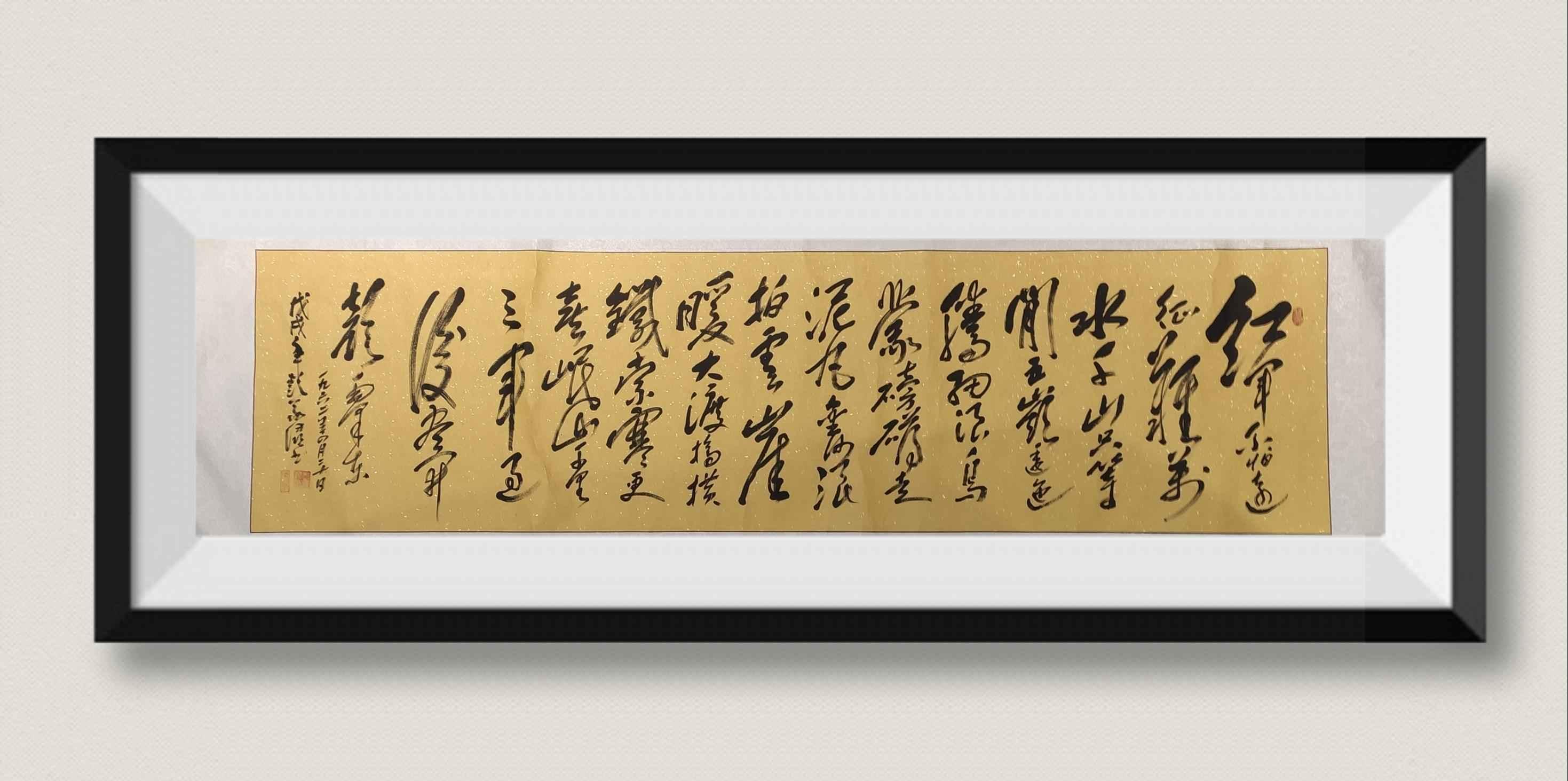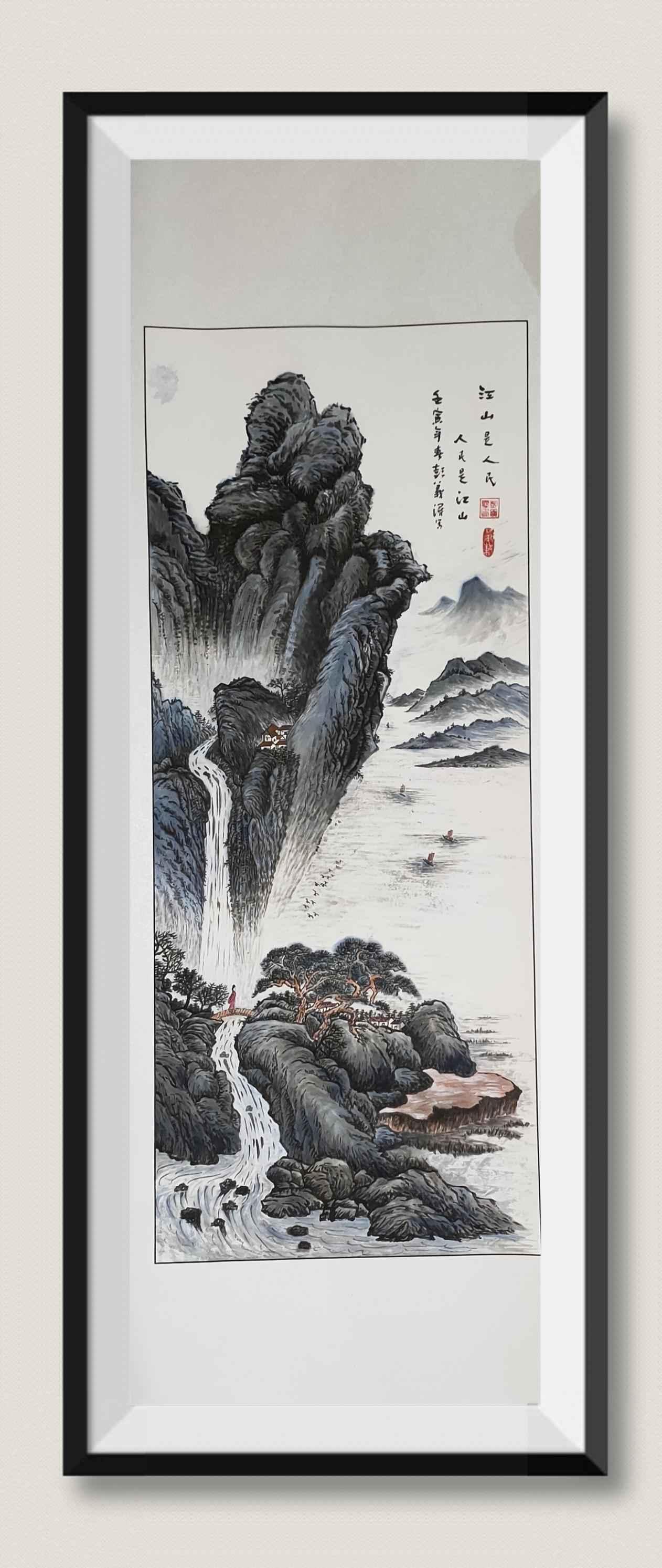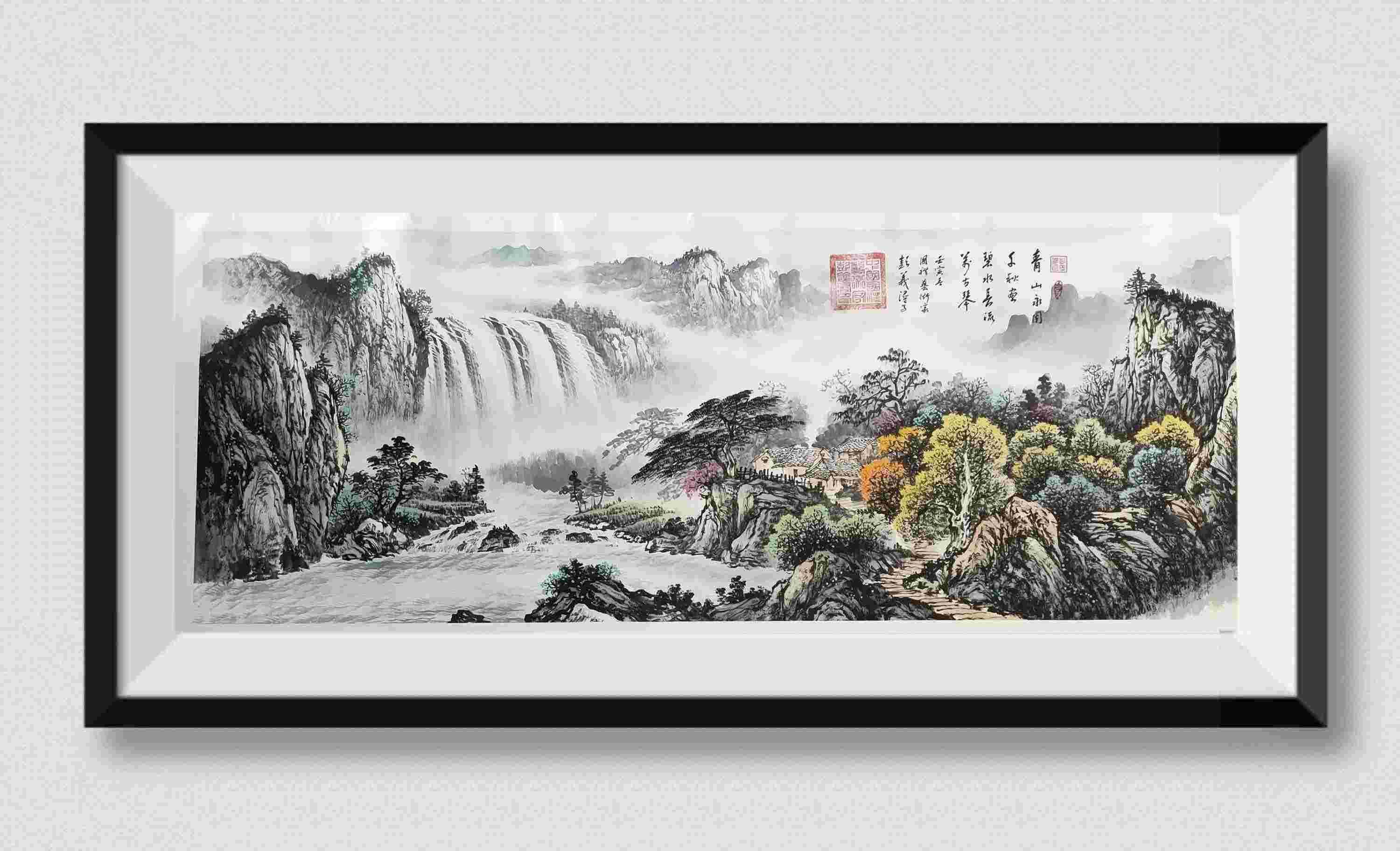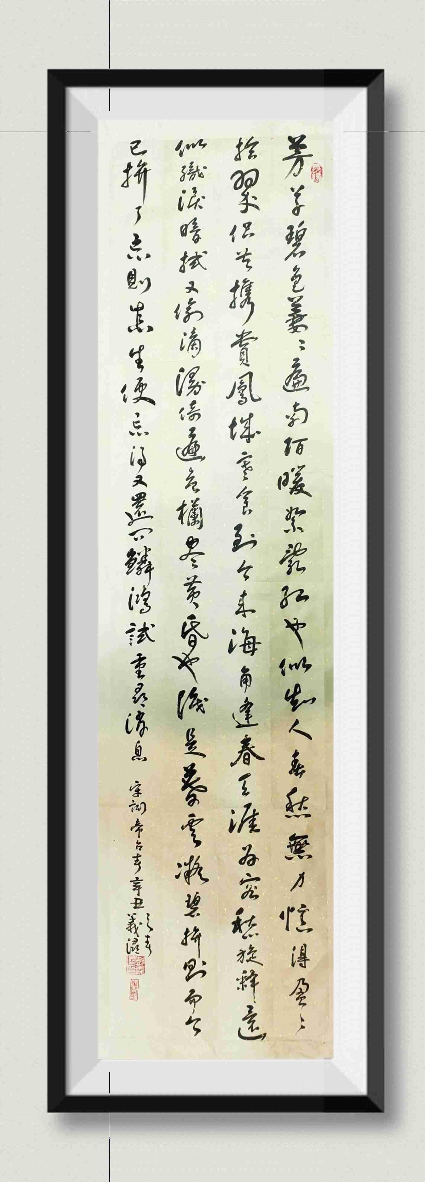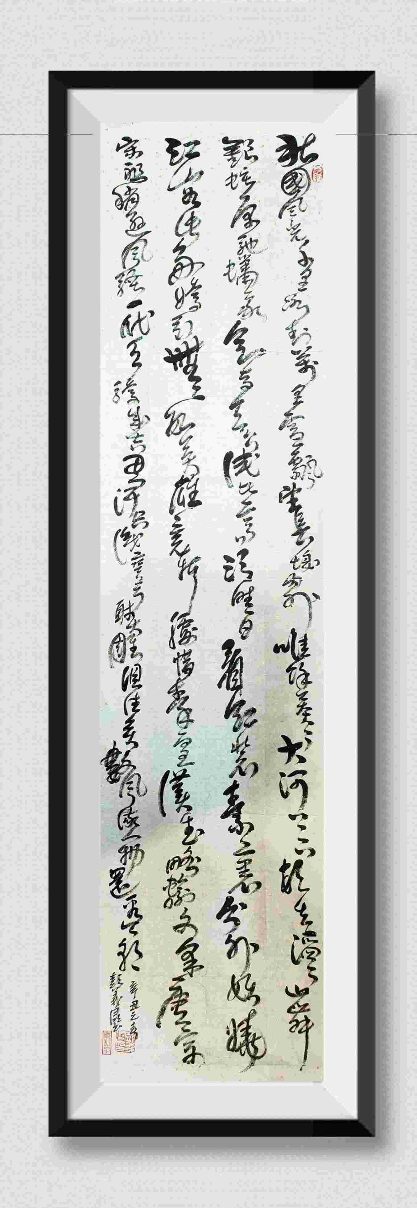 笔墨雄才师法帖,山水境界最文人。最能体现他书法性灵文人质感的书体,还当属行书与草书两体。他的行书法宗二王,以清雅品逸为潇酒,草书则集成了怀素的恣意挥纵与毛体草书的气度雄迈,写成龙飞凤舞的性灵动感,是进阶顶层的显要例证!同时,他的山水画以积墨为宗,以小青绿为法,是明清两代文人山水画的正宗传承,水墨青绿习成董其昌的雅风,积墨技法则专注于龚贤的黑白,一幅山水积墨十层表现形韵,先前是龚贤的自豪,今朝却又是彭义浔先生的绝招!师宗大家,亦成大家,文脉传承,功成主流!