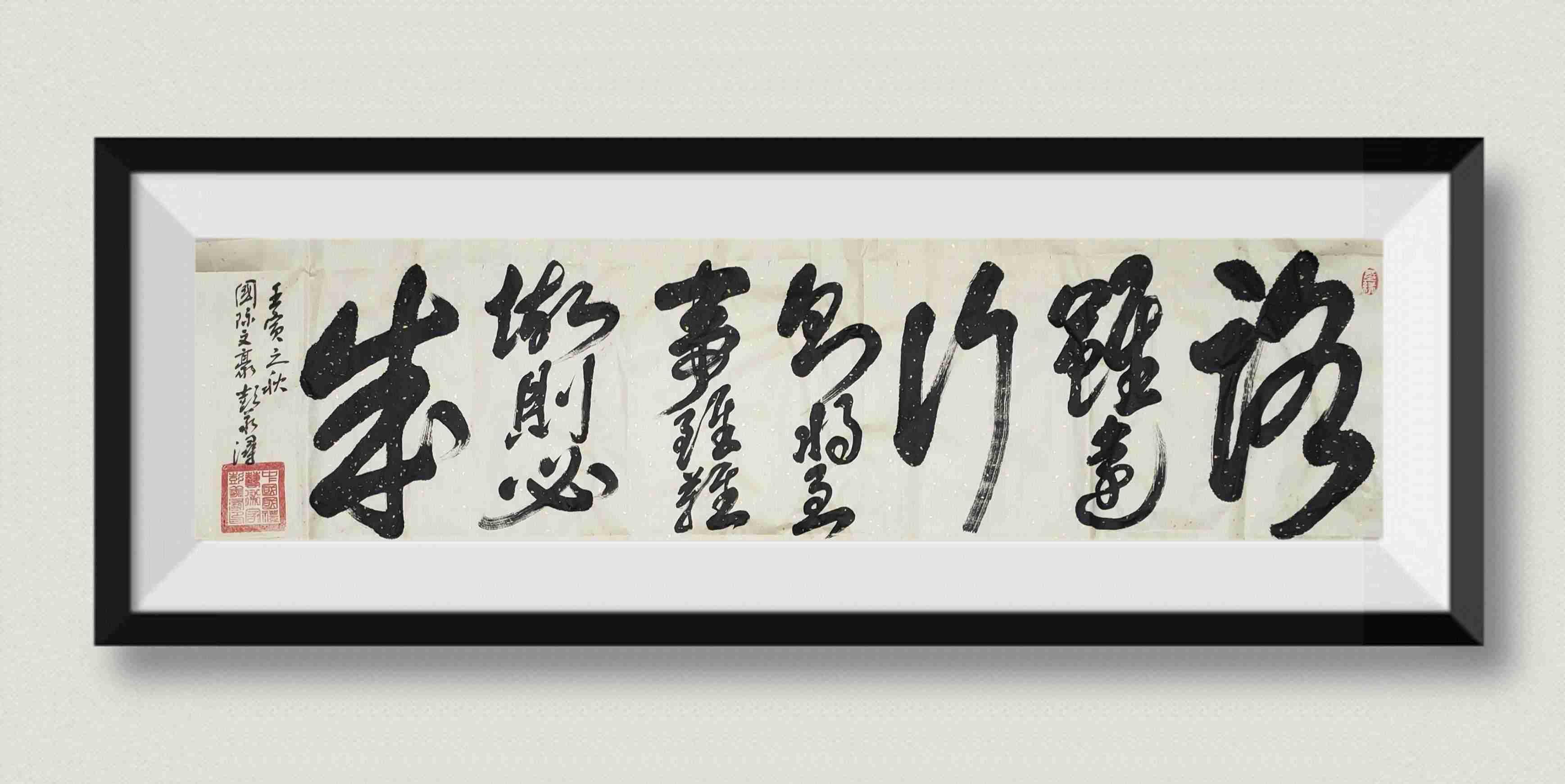 许多人执笔,为什么总是达不成中锋用笔的不偏不倚,原因就在于他们并没有通过篆书的专业习成而揣摩到中锋注墨的机密感受。他的篆书,除了在笔法上有寻幽探源的功成之外,还在墨韵上进行了独特的创建开拓,可用饱浓大墨写华滋,也善用焦墨稍干写高古,墨质显于宣纸,飞白留迹正是铁锥划沙的印证,也是屋漏有痕的顿挫千钧,能师于古而不拘泥其中,有自己书法品格的独立性,这就是大家的规格与资本。