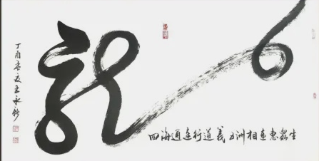 惠风和畅韵兰亭,苍龙一笔誉圣手。在精神境界的推动下,他在书法文化品牌的创造中,不断闪观思想的光烁,拥有一笔写苍龙,文化建大功的收获。草书涌涌而成依笔墨抒情怀写文化的独特风采。他的草书龙品,主题鲜明,主旨高远,寓强寓盛,招财引福,文化功用相当深厚。他以书法塑造精神,被称为苍龙圣手,龙行天下,笔墨奇观,文化雄才一笔龙,正气凌傲满乾坤!