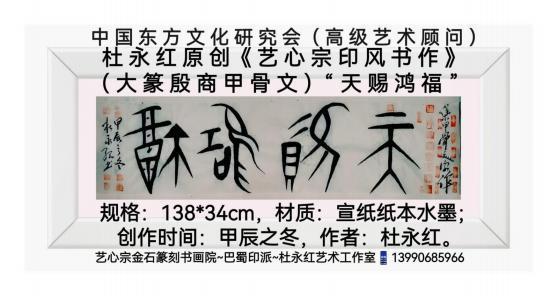 2024 年著名书画篆刻艺术家-杜永红原创《艺心宗印风书作》(大篆商周甲骨文)“寿山福海”作品在美国皇后国际拍卖会上以 1148.85 万元落槌成交!