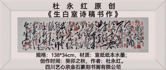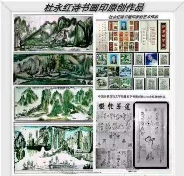 早在上世纪九十 年代初,其书画篆刻作品曾多次参展获奖,原创作品均被彭德怀纪念馆收藏、文旅部、外交部和国内外社团机构及友人收藏。并继承发展弘扬了我国传统文化艺术理念,创新出独标一格,自成一派的艺术风彩。1996 年开创艺术新门派。著有《艺心宗妙墨双钩书画艺术创作研究交流》《巴蜀印派-杜永红印谱》《艺心宗概述》《艺心宗印谱》《杜永红篆刻作品欣赏》《世界中文画派艺术创作研究交流》《艺心宗·杜永红篆刻六步心法》《艺心宗诗书画印通灵有感试论·杜永红》《艺心宗诗笺》《杜永红诗稿》《杜永红肖像印选》《艺心宗杜永红印魂·印屏》《艺心宗“印风书作》等面世…… 著有《艺心宗妙墨双钩书画艺术创作研究交流》《巴蜀印派-杜永红印谱》《艺心宗概述》《艺心宗印谱》《杜永红篆刻作品欣赏》《世界中文画派艺术创作研究交流》《艺心宗·杜永红篆刻六步心法》《艺心宗诗书画印通灵有感试论·杜永红》《艺心宗诗笺》《杜永红诗稿》《杜永红肖像印选》《艺心宗杜永红印魂·印屏》《艺心宗印风书作》等面世..