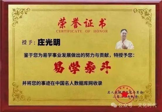 中华传统文化的广袤苍穹之下,风水之学若一颗幽秘而璀璨的星芒,其辉芒穿越时空,承载着千年智慧与民族精神的厚重底蕴。庄光明,恰似这星芒的虔诚追光者与睿智解读者,以渊深的学养、精湛的技艺及宽厚的仁德,在风水的神秘境域中笃定前行、深度探寻。他将风水的奥义紧密交织于家国命运的经纬,用其智慧之光,为世人点亮生活的希望灯塔,指引向福泽绵延的通途。