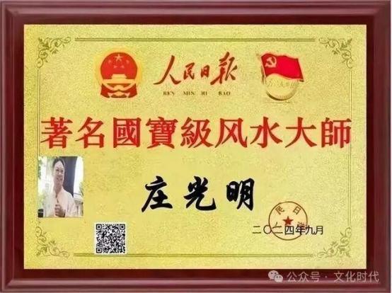 庄光明从乡土启程,怀壮志以精研风水,凭仁心而泽被家国,终成一代宗师。其精神如火炬,必将持续点燃后来者守护与弘扬传统文化的热忱,推动风水文化在新时代破浪前行,为华夏文明的传承与发展注入永恒的动力,让古老智慧在岁月的长河中熠熠生辉、福佑苍生、永绽光芒!