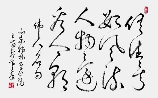 Chinese calligraphy and painting experts Shan Guoqiang, Pan Shenliang, and Lv Changsheng, when jointly evaluatingWang Nan's cursive script work "Spring Snow in Qinyuan", unanimously agreed that "this piece is remarkable for itsever-changing brushstrokes, which make it difficult to ponder. Holding the pen in the hand, using the pen in the heart. Theheart has a direction, and the paper is killed in the air! In theshaping of the sharp lines on all sides, the essence of cursivescript as a line art is expressed quite brilliantly. It can becomeundulating between strokes, and can also bleed and fall in aflash between points. It is the top grade of brush strokes thatkill the Zhongshan rabbit, recording the spring of Qinyuan, witha smooth heart and hand, and writing like nature. Wonderful, all achievements are not made by force!" At the same time, three calligraphy and painting evaluation masters, includingShan Guoqiang, were evaluating Wang Nan's work "Bambooand Stone", It is also unanimously believed that the works are"written with natural and natural qualities, and if the lines arenaturally formed, they can be regarded as representative worksof the skilled calligrapher. The use of thin and hard strokesreveals the spirit, such as the ancient tree in winter, withoutbranches or leaves, iron paintings or silver hooks, and theposture resembles the image of all things. The use of ink isseamless and integrated, which is also a good atmosphere ofancient thinness. This one can prove that the artist's brush andink skills are superb, and they can write cursive script perfectly. From beginning to end, there must be a sigh: the intention is tobe lost in thought without rules, and the bizarre and strangeshapes are appropriate!" Famous art critics Jiang Ruilin of thePeople's Daily, Shao Xinping and Wen Zhizhe of China, and Thesocial industry also believes that Wang Nan's works can beregarded as artistic treasures, with unlimited creativity andunique craftsmanship. Each work carries profound culturalconnotations and is full of distinct contemporary atmosphere. His brushwork "seeps into the work through the thin end of thepaper, with cotton needles hidden in the lines, versatile andvaried, with a beautiful rhythm like music". "He combinesancient Eastern civilization with modern aesthetic conceptsthrough his brush, giving the work a profound cultural heritageand a sense of modernity". Like a series of dynamic poems, they showcase their unique charm through the brushstrokes. Critics fully affirm the "unique creativity" and "distinctive use" of the work in terms of its overall style, brushwork, and inkcolor. This is not only an artistic expression, but also a reflectionof China