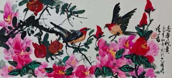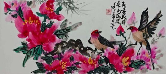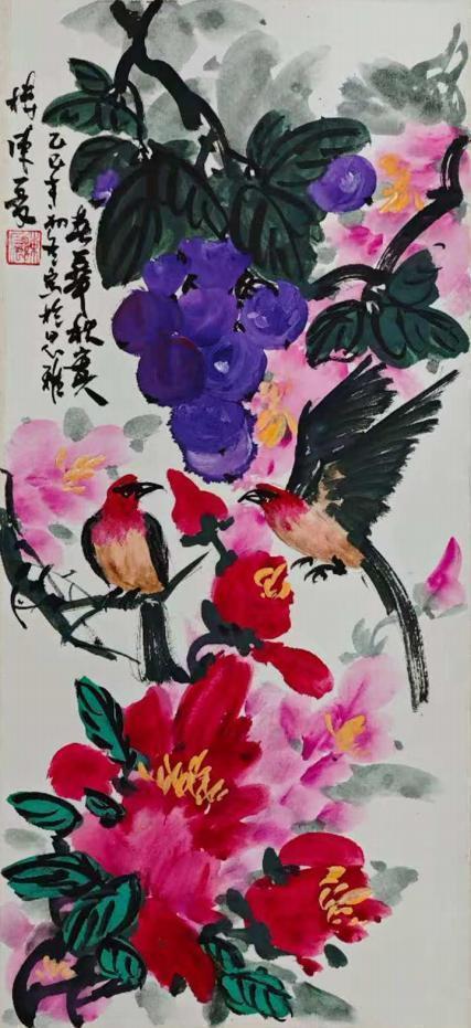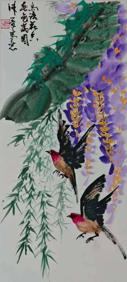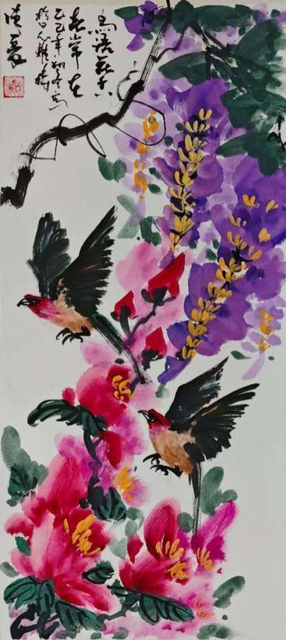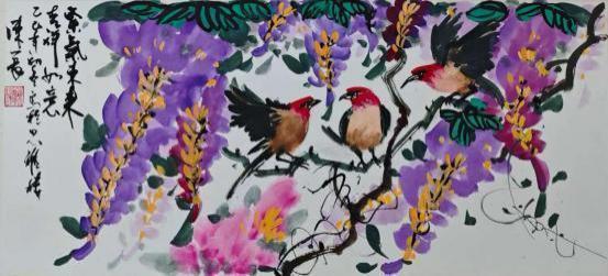 陈夏的艺术世界,首先以其笔墨的磅礴张力与生命的深邃律动撼动人心。他深谙中国画古法用笔的精髓,线条或如金石般遒劲有力,或似行云流水般舒展畅达,在宣纸上构建起雄浑苍劲的意象骨架。作品大展宏图中雄鹰振翅的英姿在力透纸背的笔触中呼之欲出,尽显凌云气概。而春暖花开系列则更见其色彩的现代性突破,他大胆借鉴西方表现主义的光色理念,将传统水墨的含蓄渲染与明丽斑斓的色块交响完美融合,营造出春光烂漫、万物勃发的视觉盛宴。这种既扎根于水墨精神,又饱含当代视觉冲击力的色彩语言在卢浮宫斩获金奖,其感染力跨越了文化的藩篱。