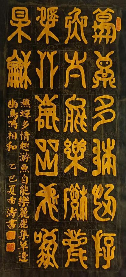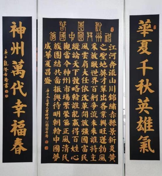 希涛先生先后在全国及省、市各类书展中获奖 70多次,其中全国性的金奖、一等奖、优秀奖达十多次。2020 年十月创作的沁园春“神州共圆中国梦”楷书作品被人民大会堂收藏。2021 年希涛出席央视“文化强国”栏目组在山东曲阜举办的庆祝建党七十周年全国著名艺术家颁奖盛典。其作品曾在北京、上海、杭州、南京、郑州等地展出,并载入十多种书刊及专辑。希涛书法作品,传统功力深厚、个性特点鲜明,楷书根正字俊,榜书雄浑大气,行书气韵流畅,草书豁达奔放。著名书法家张海等点评云:希涛书作体现了严正、流畅、雄强、古拙,同时亦表现出凝重洒脱,厚重沉稳,端庄大气。